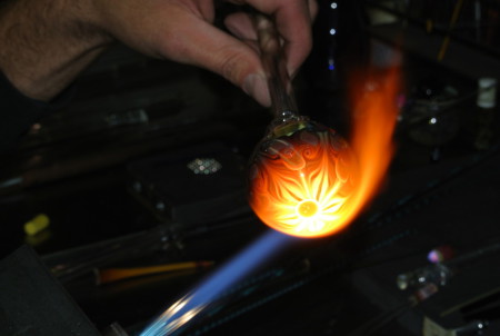 Benjamin stumbled upon blowing glass in December 2007 trying to make an accessory for his Fish Breeding business. He continues to refine his works through skills acquired in workshops with some of the finest artists in the glass industry. His work has expanded into making custom colored tubing, larger hollow vases and cold-working glass.